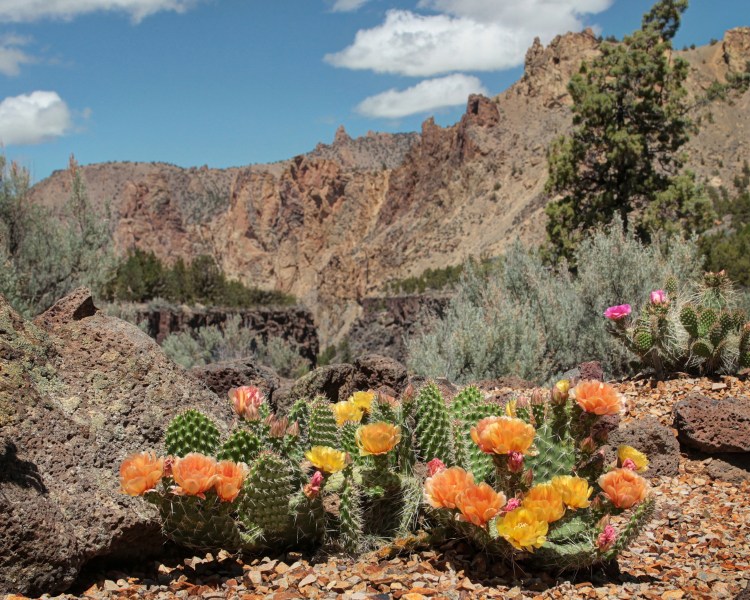 Our love of cactus in the desert southwest led us to create a cactus garden in our backyard here in the high desert of Central Oregon. Trial and error of growing cold hardy cactus able to survive harsh winter cold is what we do! Currently we have over 60 varieties that thrive in our climate. We propagate and sell plants (rooted or cuttings) from our garden situated on the edge of the Crooked River canyon adjacent to Smith Rock State Park.