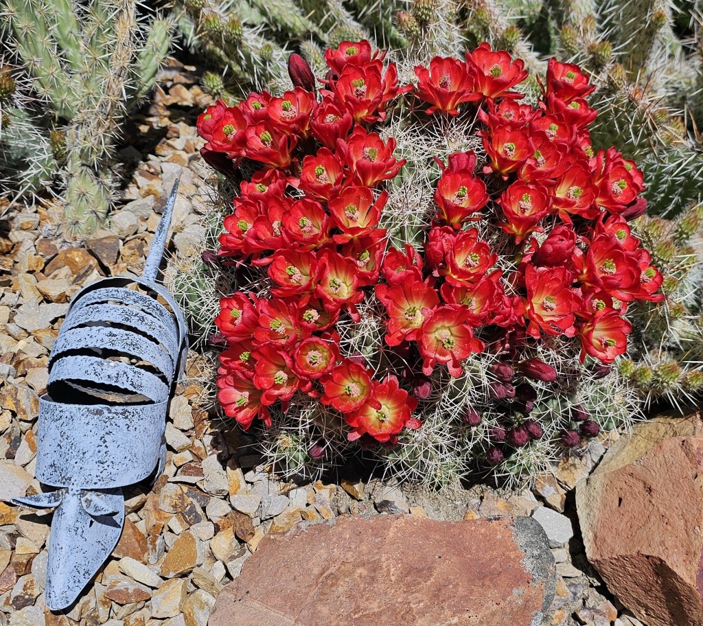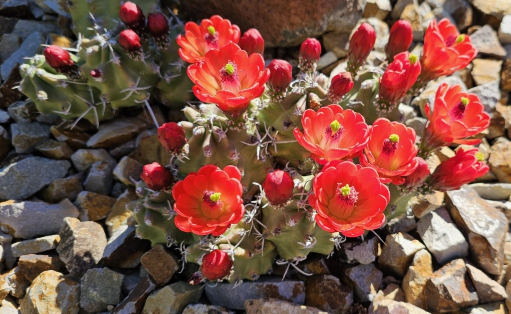 Mojave Claret Cup Cactus is another great cactus for a cold garden. Beautiful scarlet cup-shaped flowers open and stay open for approximately 7 days before closing. Over time new stems keep forming making it mound upward. This form is more tolerant of wet conditions. Can reach nearly 3-4 feet across. Zone 5-7